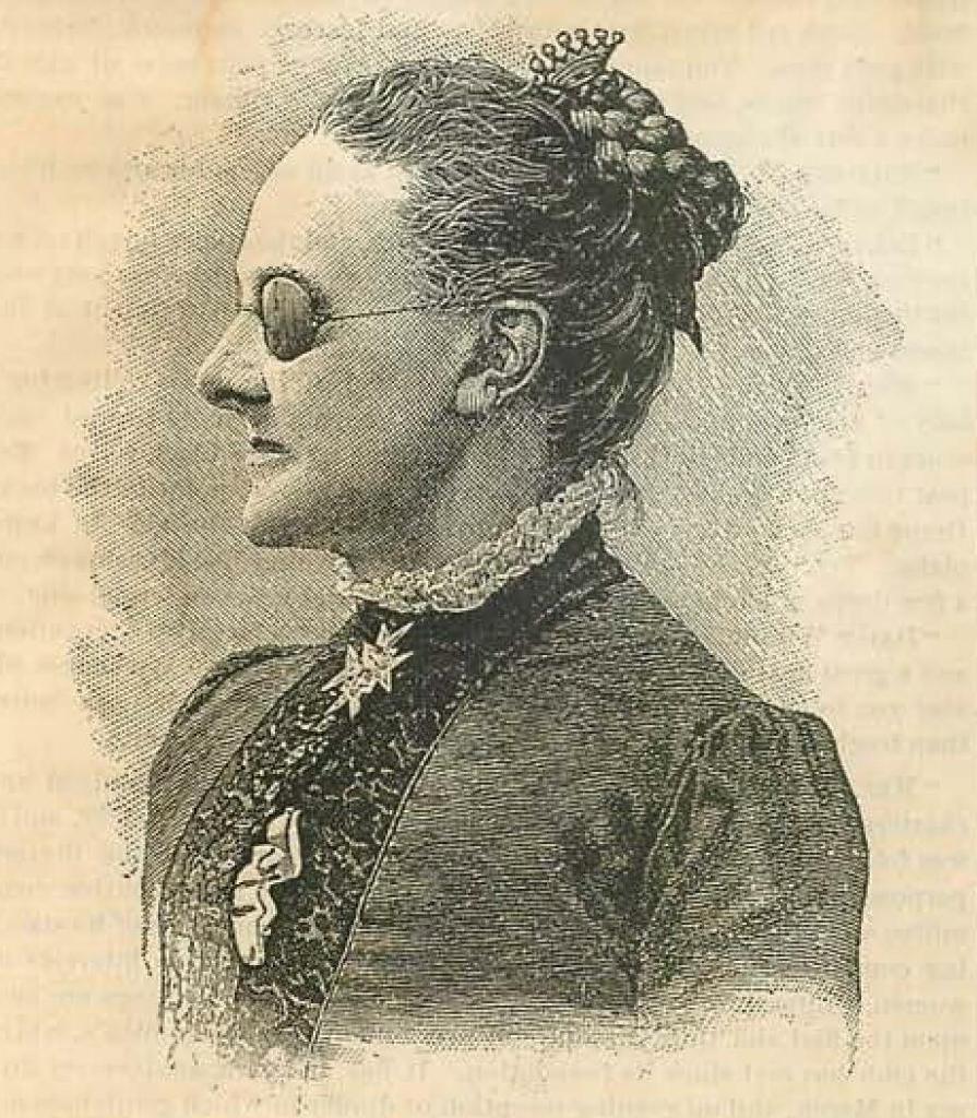 Greyscale illustration of Alice King in profile, published in Demorest’s Monthly magazine, 1885